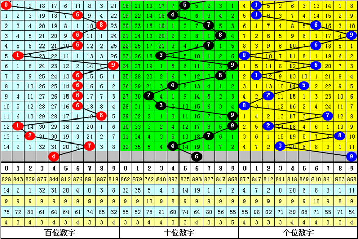 跨度、和值分析:近期跨度主要分布在2-8区域,比较分散,本期预计跨度上升,参考跨度5。和值近期波动范围较大,上期开出和值14,本期看好和值上升,参考和值19。