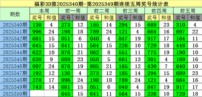 老梁福彩3D第2025350期综合推荐: